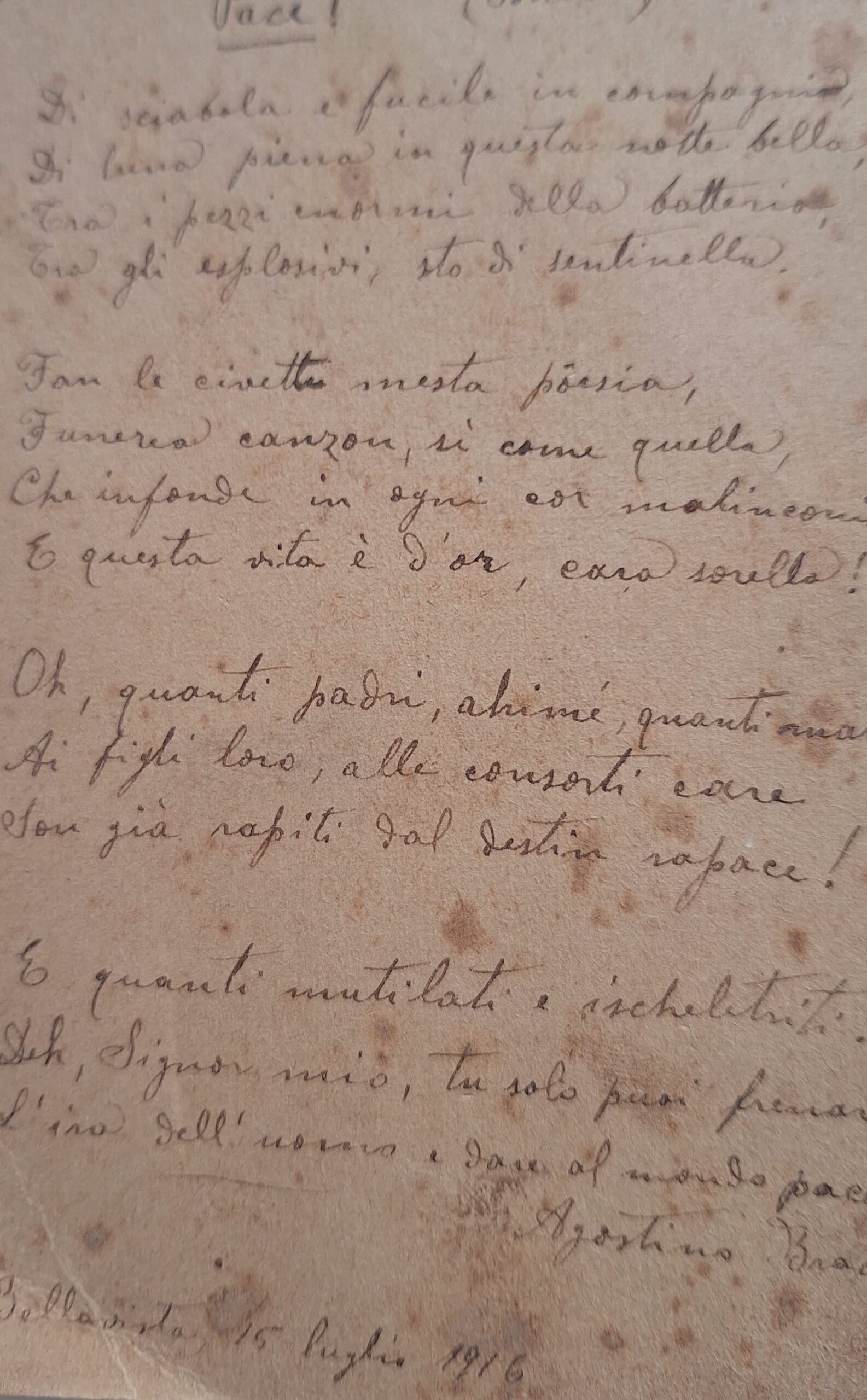 Ma continuò a manifestare apertamente le proprie idee durante la guerra e dopo: la poesia che ho trovato, spedita alla sorella Teresa (durante il conflitto, dalla Piazza Marittima!) è eloquente: